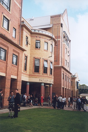 | A picture of the the Faculty of Education building, where we had a great number of our debates. This picture was taken after round eight on the nine preliminary rounds on the 8th January if I remember rightly. That's a Scottish delegate in his kilt on the left-hand side of the picture. :) |