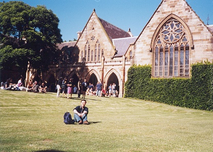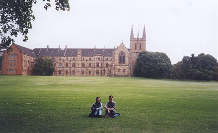 | This picture was taken outside the massive lawn before St. John's college, sometime on the 8th January too. The picture's a little hard to see in detail, but that's Sally Tang from the National University of Singapore beside me. She's a 2nd year law undergraduate, and was in the tournament as a trainee-adjudicator. And Singaporeans being Singaporeans, we tended to do things together while we over in Sydney, so this was taken during a bit of free time we had, where we walked over the campus looking for areas we haven't seen yet. :) |